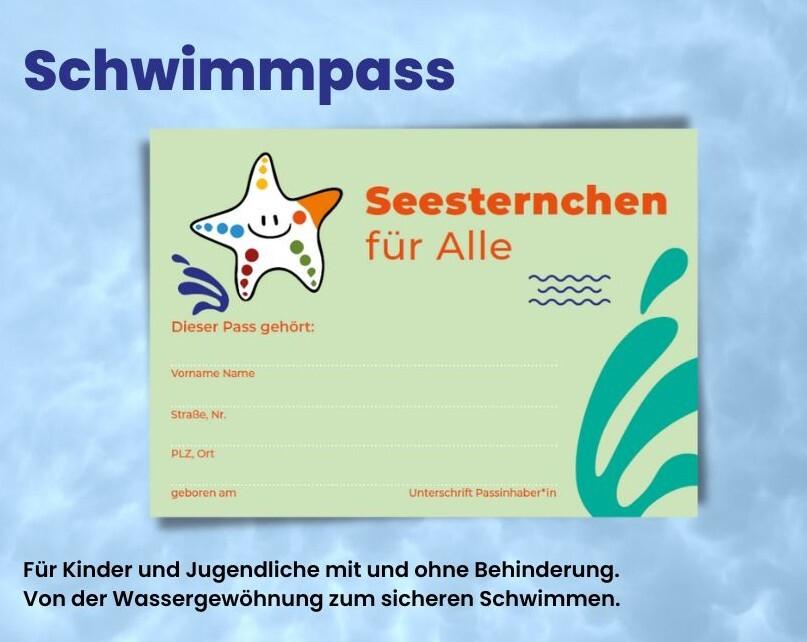 Der Schwimmpass ist der Ausweis, in dem dokumentiert wird, welches Seesternchen erfolgreich abgelegt wurde. Es dürfen nur die Vor- und Niveaustufen dokumentiert werden, die auch praktisch nachgewiesen wurden. Der Schwimmpass ist ausschließlich vom Prüfer oder der Prüferin auszufüllen.